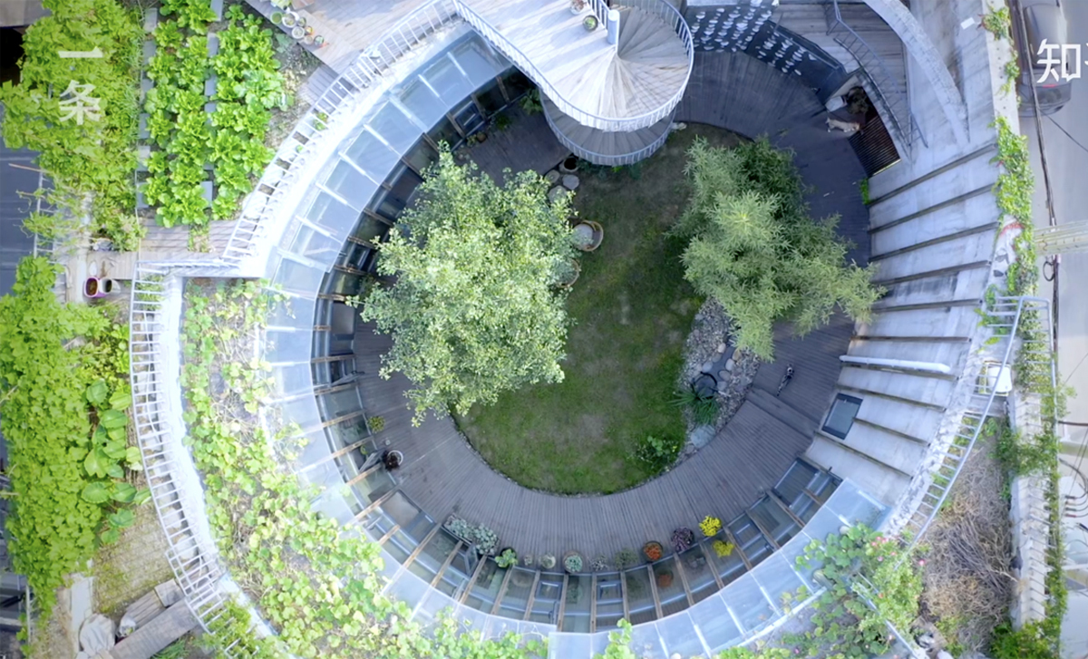 Ngôi nhà của gia đình nằm trong ngõ nhỏ với tường ngoài màu xám, câu đối đỏ, không khác nhiều những ngôi nhà xung quanh. Nhưng khi cổng được mở ra, đó là một thế giới hoàn toàn khác biệt. Một sân tròn, có hàng tre, bộ bàn trà nằm trên thảm cỏ xanh mướt, dòng suối nhỏ róc rách và cây ngân hạnh xanh um tùm.