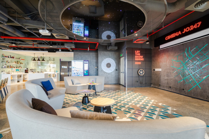 "Quan tâm đến công năng và cảm nhận của người sử dụng thay cho tính thẩm mỹ thông thường, khu vực chill-bar tại Lounge JO247 với lối thiết kế phóng khoáng, mang lại sự liên kết giữa con người và không gian, giàu tính sáng tạo và nghệ thuật", đại diện Sojo Hotels chia sẻ.
