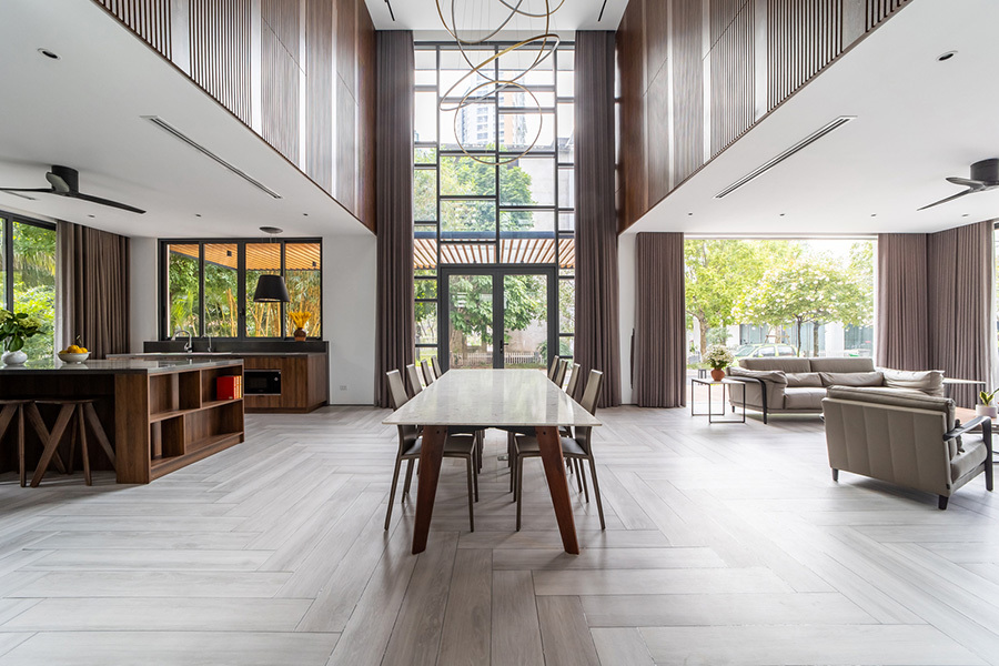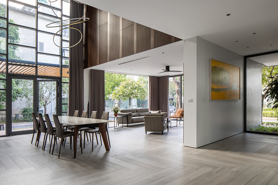 Cảm hứng để thiết kế biệt thự hiện đại này cũng đến từ sự bình dị, nhẹ nhàng và duyên dáng nhưng cũng rất đặc biệt của bụi tre bên cạnh.
