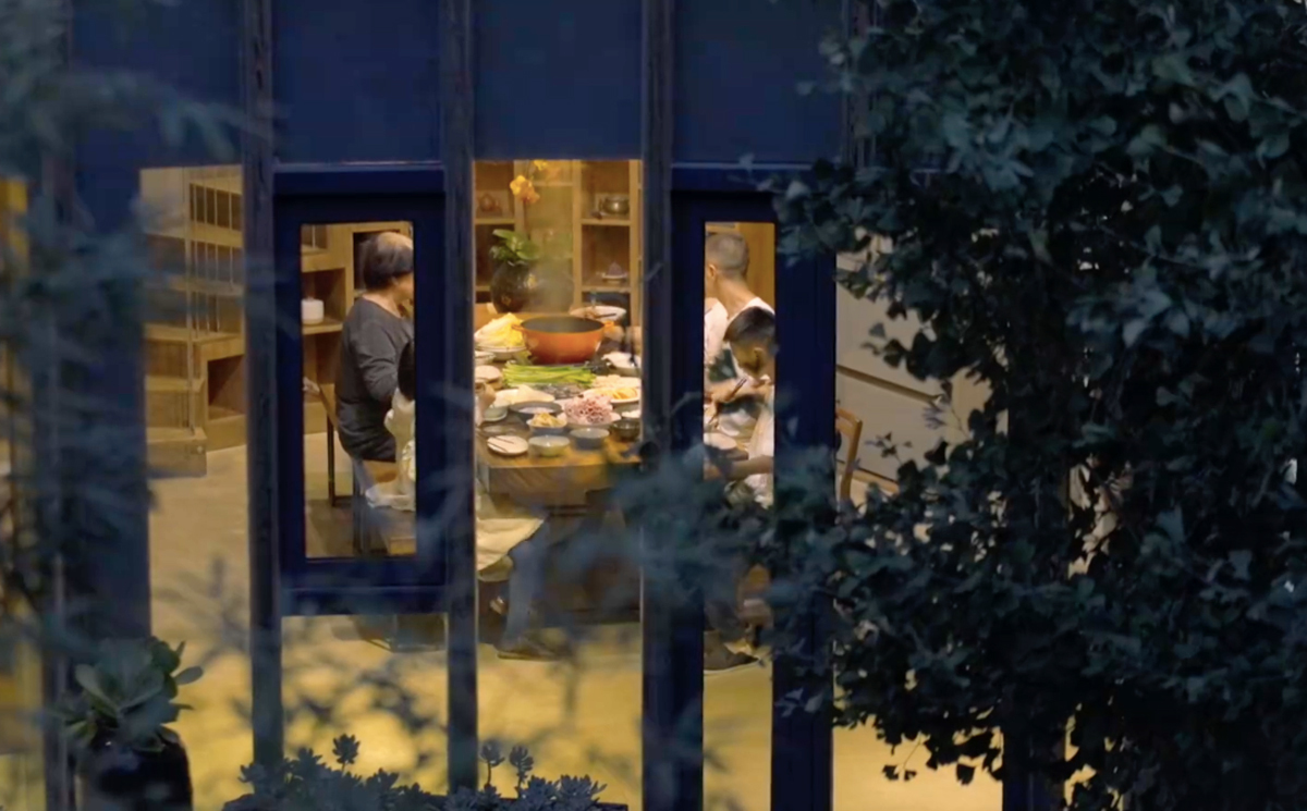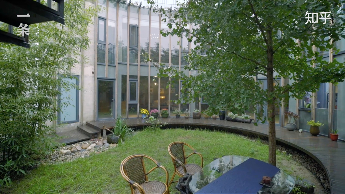 Ngôi nhà của gia đình nằm trong ngõ nhỏ với tường ngoài màu xám, câu đối đỏ, không khác nhiều những ngôi nhà xung quanh. Nhưng khi cổng được mở ra, đó là một thế giới hoàn toàn khác biệt. Một sân tròn, có hàng tre, bộ bàn trà nằm trên thảm cỏ xanh mướt, dòng suối nhỏ róc rách và cây ngân hạnh xanh um tùm.